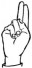 На ћирилици написано ВУКОСАВ ЧЕНЕДИЋ састоји се из 14 слова [?]. Исписано ћириличном једноручном азбуком за глувонеме: